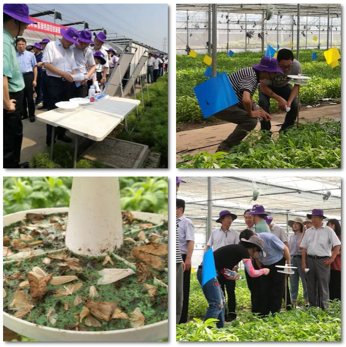 在示范園區(qū)生物農(nóng)藥、性迷向、色板誘殺等蟲害綠色防控技術(shù)齊聚,均一展技術(shù)防控特點(diǎn)。深圳百樂寶公司的生物食誘劑“澳朗特“在蔬菜種植園中應(yīng)用廣泛,以其高效便捷、綠色環(huán)保的防控特性吸引了眾多與會(huì)專家的目光。
